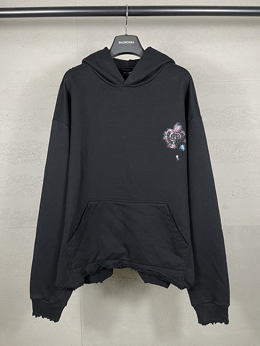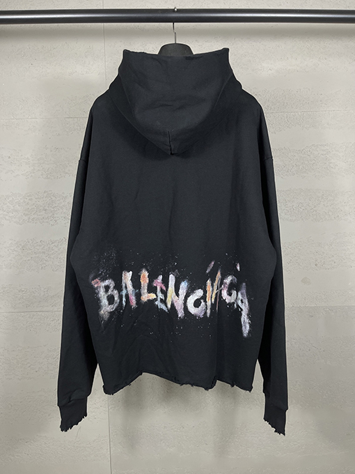 | 商品说明 | このプレミアムエディションのフード付きスウェットシャツは、フロントにクラシックな麦の穂の刺繍とグラフィティパターンをあしらっています。ブランドを象徴する退廃的な芸術性と洗練された職人技が融合し、若々しく反骨精神あふれるアティテュードとファッショナブルなセンスを表現しています。背面には手描きのレタリングが施され、色彩の重なり合う独特の視覚効果を生み出しています。ウォッシュ加工とダメージ加工が施された仕上げは、バレンシアガならではの「ハイストリートの美学」を体現しています。