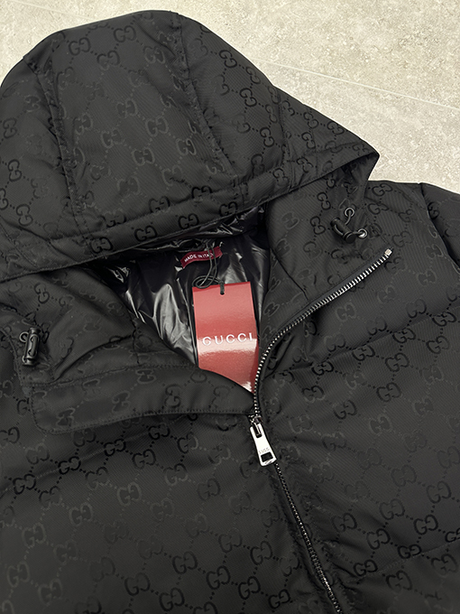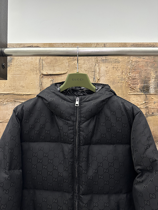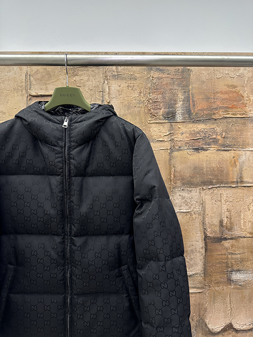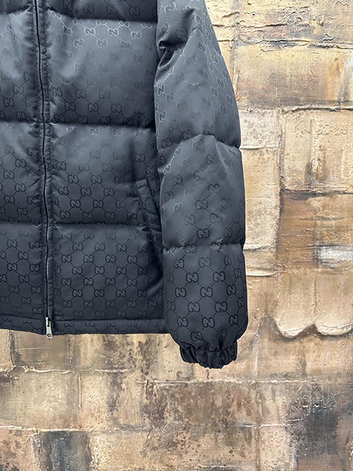 商品说明 | グッチは、ラグジュアリーなクラフツマンシップで冬のエレガンスを再解釈。新作ジャカードダウンジャケットは、ブランドを象徴する独特の織り模様が魅力を放ちます。特注の高密度防風生地を使用し、グッチを象徴するダブルGジャカード織りで仕上げられています。控えめな光沢が光の下できらめき、ラグジュアリーな雰囲気を醸し出します。内側にはハイフィルのホワイトグースダウンを90%封入。かさばることなく抜群の保温性を発揮し、軽さと暖かさを両立しています。 |