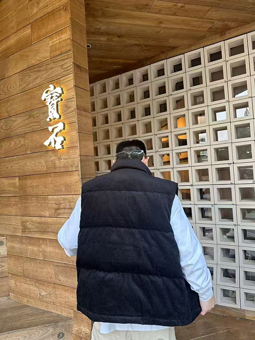 商品说明 | 2025年秋冬コレクションで新たに発表されたコーデュロイダウンベストは、レトロなスタイルとモダンな美学を融合させ、温かさとスタイリッシュさを完璧に融合しています。高密度で織り上げ、染め上げたコットンコーデュロイを使用し、特徴的な立体的な縦縞模様と滑らかで伸縮性のある肌触りが特徴です。自然な反射光が生み出す繊細な光沢は、エレガントさと独特のヴィンテージ感を醸し出します。 |