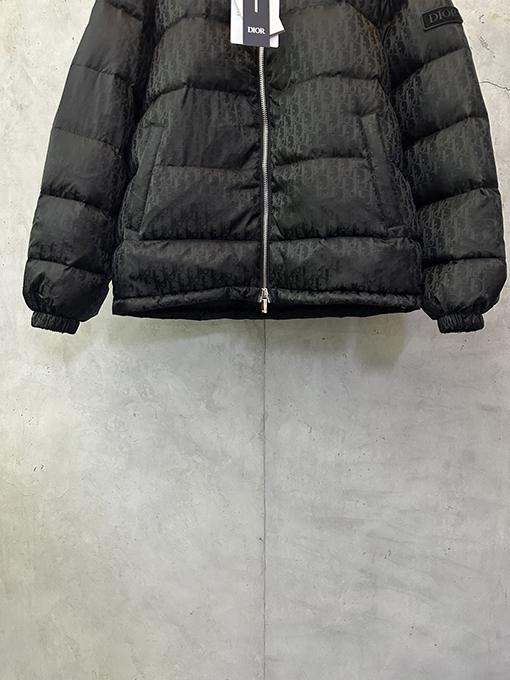商品说明 | スタンドカラーのこのオブスキュア柄ダウンジャケットは、ブランドを象徴する洗練された美的感覚と機能的なデザインを体現し、冬の季節にふさわしいスタイリッシュさと暖かさを完璧に兼ね備えています。特注ナイロンジャカード生地を使用し、ほのかにラグジュアリーなオブスキュアな光沢を放ち、光に照らされてブランドを象徴するテクスチャーディテールが浮かび上がります。高密度織りは優れた防風性と防水性を備えながら、滑らかで繊細な手触りを保ち、軽量ながらもハリのある着心地を実現しています。 |