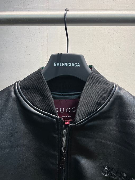 商品说明 | グッチの2025年シーズンの新作コレクションは、ブランドを象徴するクラフツマンシップと現代的なセンスで、クラシックなボンバージャケットを再解釈しています。上質なレザー、時代を超越したシルエット、そしてシグネチャーのディテールを融合させたこのジャケットは、モダンで控えめなラグジュアリーを醸し出し、今シーズンのマストハブアイテムとして、多用途に使える一枚です。上質な光沢のあるブラックレザーを使用し、滑らかでしなやかな手触りでありながら、しっかりとしたハリのある仕上がりを実現しています。 |