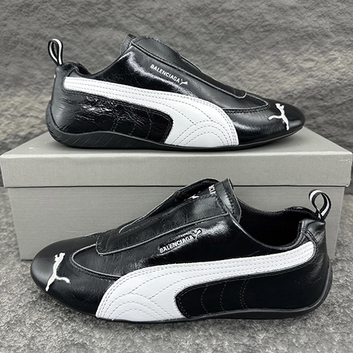 商品说明 | バレンシアガのSPEEDCATブラック&ホワイトカーフスキンスニーカーは、ミニマルなラインとレーシングからインスピレーションを得ており、ラグジュアリーとスピードの美学を完璧に融合させ、「ハイエンドとハイパフォーマンスの共存」というファッショナブルな姿勢を体現しています。滑らかで洗練された手触りのトップグレインカーフスキンレザーを使用したアッパーは、フラットで滑らかな構造とクリーンで流線型のシルエットを特徴とし、ブランドが一貫して貫くアバンギャルドなスピリットを体現しています。 |