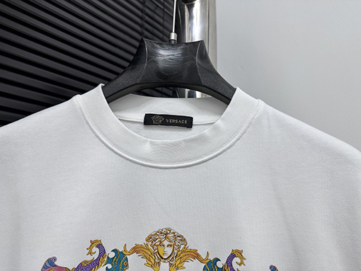 商品说明 | ヴェルサーチは、ブランドを象徴するラグジュアリーなスタイルを、精緻な職人技で体現した、秋冬シーズンに向けた新作クルーネックスウェットシャツを発表します。特注の高重量ファインテリー生地を使用し、柔らかく滑らかな質感と繊細な肌触りを実現しながらも、ハリとサポート力を兼ね備え、快適さとスタイルを両立しています。精密なプロポーションと彫刻的なシルエットが、洗練されたルックを瞬時に演出します。 |