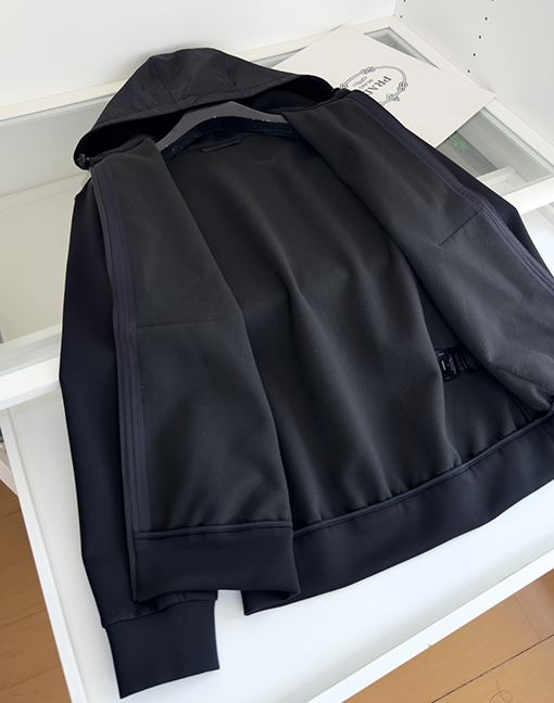 商品说明 | プラダの2025年秋冬コレクションは、洗練された職人技と実用的な美学によって、都会的でハイエンドなスポーツウェアにおけるブランドの独自の地位を改めて示しています。革新的な素材構成と緻密な仕立てで仕立てられたこのナイロンパネルのフード付きカーディガン・スウェットシャツジャケットは、機能性とスタイルを兼ね備えた万能なアイテムで、都会生活の多様なニーズに完璧に応えます。