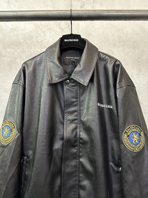 商品说明 | バレンシアガの新作25FWバッジレザージャケットは、シグネチャーであるデコンストラクトな美学とハイストリートの質感で、都会的な機能性を再解釈しています。環境に優しいカスタムメイドのリサイクルPUレザーを使用し、繊細でしなやかな肌触りを実現。シャープで構築的なシルエットが、自然で立体的なシルエットを生み出します。軽量で防風性に優れたこの素材は、耐久性と防シワ性にも優れ、スタイルと実用性を完璧に両立しています。 |