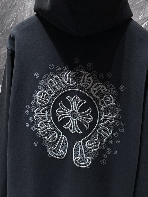 | 商品说明 | クロムハーツは、精緻な職人技と象徴的なデザインで、再び秋冬トレンドを席巻しています。今シーズンのホースシュー刺繍が施されたサンスクリットクロスのフード付きスウェットシャツは、ブランドのハイストリートラグジュアリーDNAを完璧に体現し、ディテールを通して力強さを表現し、職人技を通して確固たる姿勢を貫いています。ホースシューロゴ、サンスクリット語の模様、そして象徴的なクロスモチーフなど、どれもが立体的な視覚的インパクトを生み出し、クロムハーツならではの職人技を鮮やかに放ちます。  |