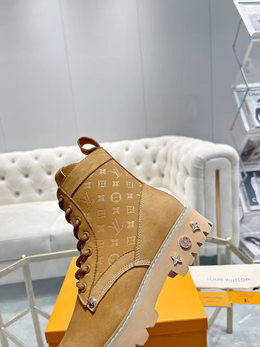 | 商品说明 | ルイ・ヴィトン公式の最新秋冬コンバットブーツは、その精巧なレザークラフトマンシップと究極の快適性でファッション愛好家を魅了し、瞬く間に人気を博しました。輸入された最高級ヌバック牛革を使用したアッパーは、繊細でしなやかな履き心地と、リッチでありながら軽やかな質感を実現しています。天然のヌバックの質感が独特のマット仕上げを生み出し、控えめながらもラグジュアリーな光沢を放ち、ルイ・ヴィトンならではの洗練さと力強さを体現しています。レザーには耐水性と耐傷性を高める特殊加工が施されており、長年履いてもシャープでスタイリッシュな外観を保ちます。 |
