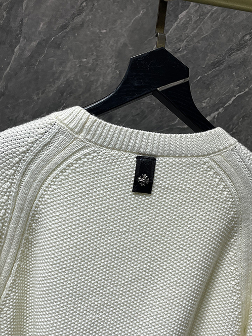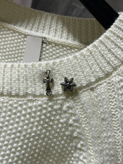 | 商品说明 | クロムハーツは、メタルクロスをあしらったリップドセーターの新作コレクションを発表しました。ゴシック調の要素と細部まで丁寧に仕上げられたディテールが特徴的なこのセーターは、ブランドを象徴する反骨精神あふれるストリートウェア精神を体現しています。大胆さと控えめさが絶妙なバランスで融合したこれらのアイテムは、視覚的にも印象的で、秋冬のルックに欠かせないアイテムです。上質なウール混紡ニット糸を使用し、柔らかく繊細な質感と抜群の保温性を実現しています。 |