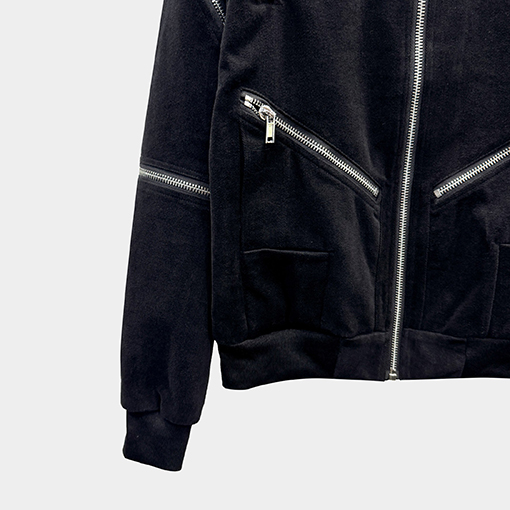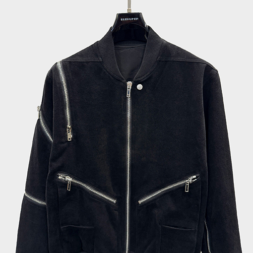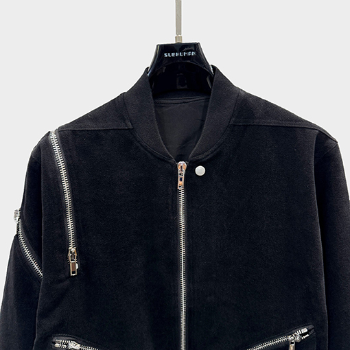 | 商品说明 | ストリートウェアのアヴァンギャルドなスピリットを軸に、ダークカラーで独創的なデザインのボンバージャケット。脱構築主義とハイストリートのシルエットを融合させ、独立心と主張に満ちたビジュアルを体現しています。特注コットン生地を使用し、肉厚で丈夫な肌触りと柔らかく快適な裏地が、保温性と通気性を両立しています。外側は、シャープなラインと強いレイヤード感を併せ持つ、マルチカットの脱構築構造を採用。肩と袖のプロポーションは、彫刻的で垂直なシルエットを実現するために、細部までこだわって調整されています。 |