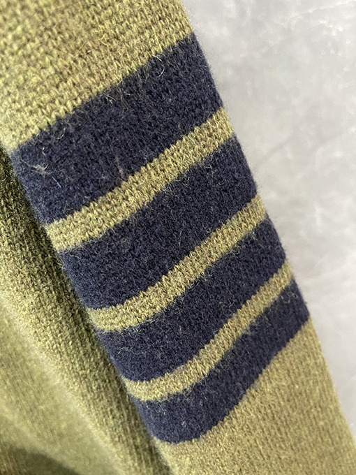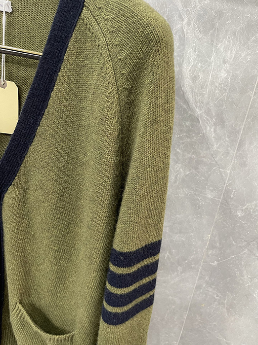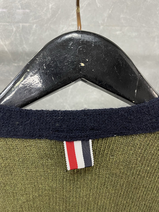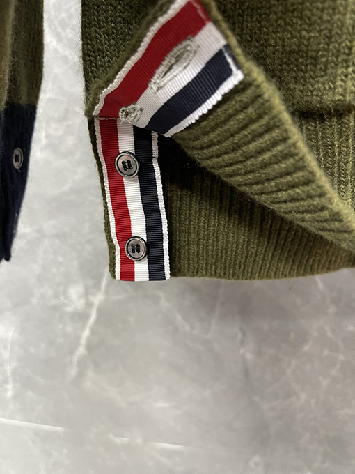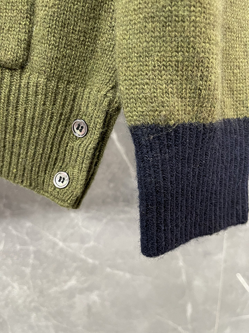| 商品说明 | このトムブラウンの配色カーディガンは、イタリア・ストール社製のコンピュータジャカード織機で製作されています。1インチあたりに357本もの精密な筬(ひ)が配置され、カシミヤにも匹敵する極上の肌触りを実現。オーストラリア産メリノウールの7合糸を使用し、cm²当たり21ゲージという驚異的な密度を達成——つまり、1平方センチメートル内に441個の微細なループが互いに絡み合っています。 |