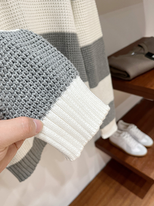 | 商品说明 | トムブラウンのワッフルストライプポロカラーニットセーターは、独特の風合いと繊細なディテールで、春秋のファッショナブルでカジュアルなスタイルを完璧に体現しています。セーター全体は、細番手の綿糸を使用したワッフルニット生地で仕立てられており、柔らかく繊細な手触り、通気性と保温性に優れ、トムブラウンの一貫した上質な肌触りと快適な着心地を体現しています。 |