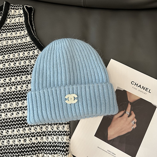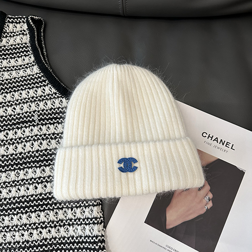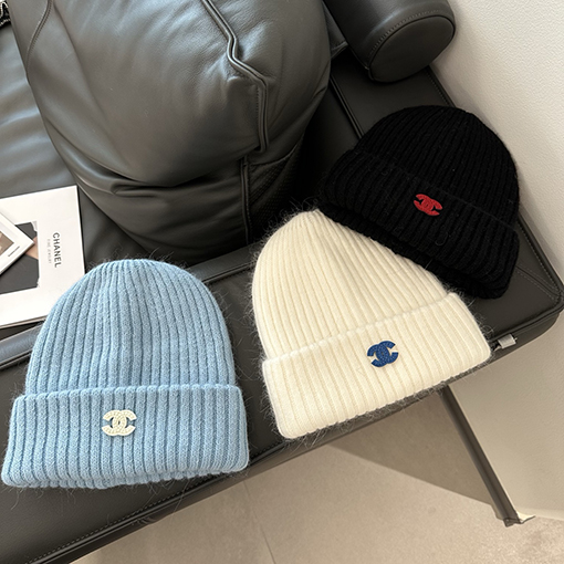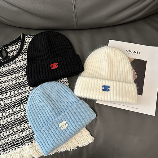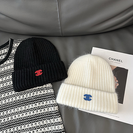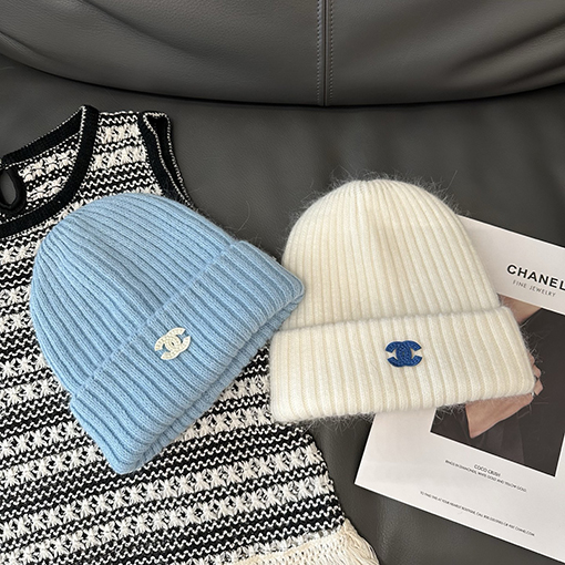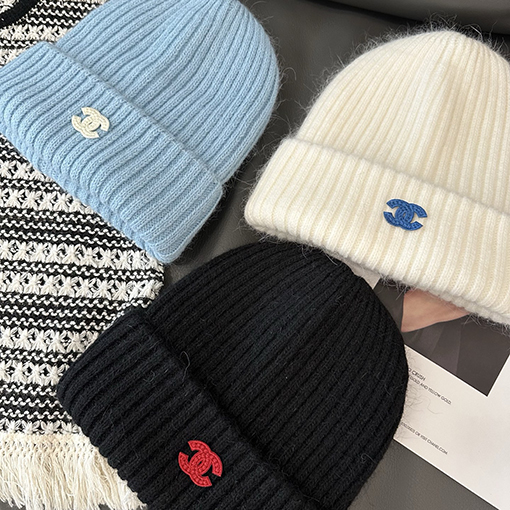 シャネル アンゴラ産ラビットファーの二重編みニットキャップ