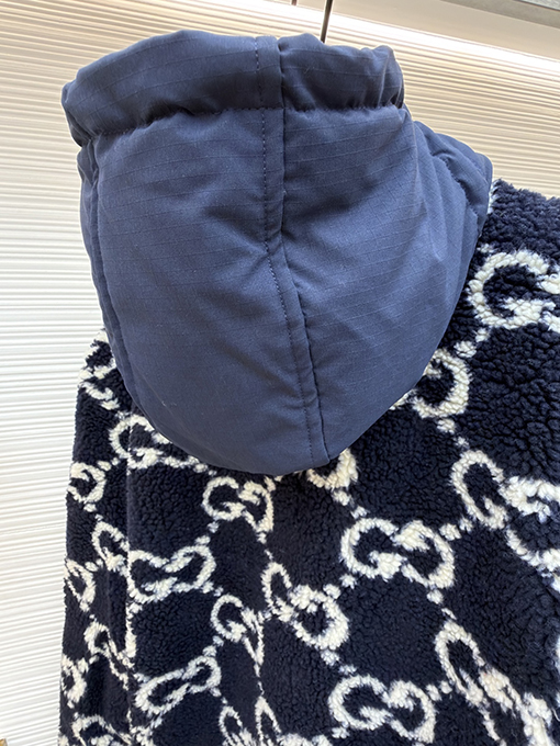 | 商品说明 | この「モノグラムシアリングジャケット」は、ブランドの定番モノグラム柄を継承し、高級ジャカードシアリング生地にブルーとホワイトのカラーブロックデザインを施し、豊かなイタリアンスタイルと独特の冬らしさを表現し、グッチの秋冬コレクションを代表する一枚となっています。ジャケット本体には460gの特注シアリングジャカード生地を使用し、柔らかく繊細な手触りで、ふっくらとした豊かな風合いと抜群の保温性を備えています。 |