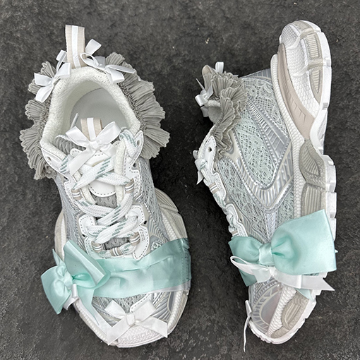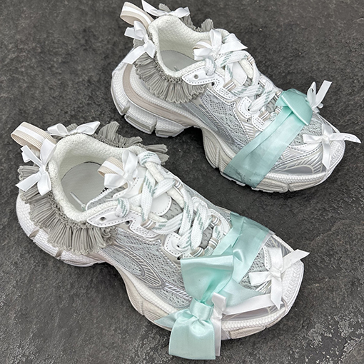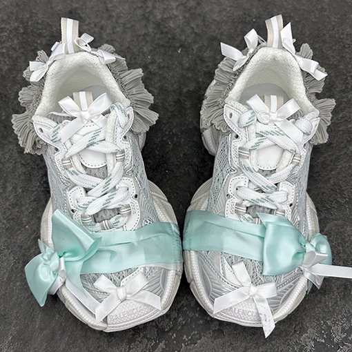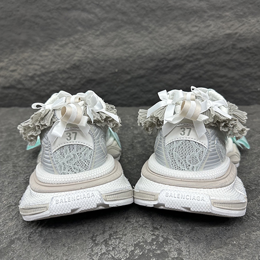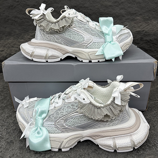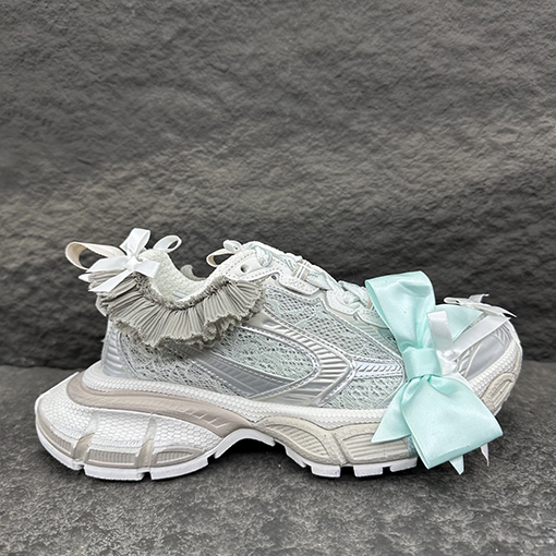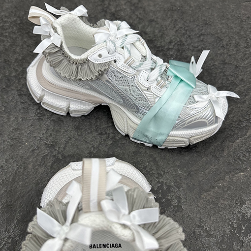 | 商品说明 | 新作の3XLサテンボウスニーカーは、ストリートスタイルと洗練されたエレガンスを融合。高密度ポリエステルを使用したアッパーには、個性的なサテンボウデザインがあしらわれ、力強いシルエットに柔らかさを添え、バレンシアガのアヴァンギャルドなロマンスを表現しています。ブランドを象徴するダメージ加工を踏襲し、つま先とソールのディテールには、まるで時を経て風化したかのような、幾重にも重なった履き心地が特徴的です。それでいて、力強い個性を放ちます。 |