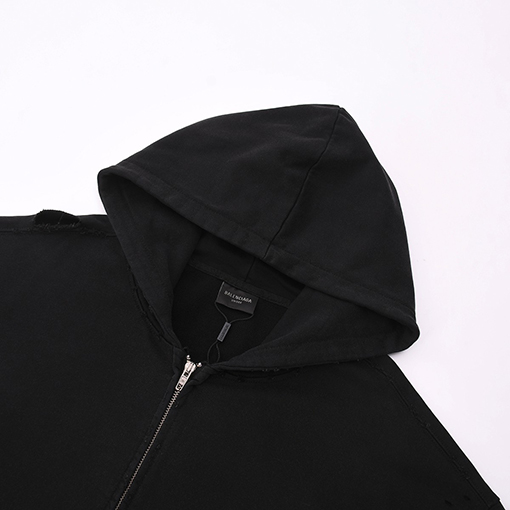 | 商品说明 | このダメージ加工のジップアップパーカーは、今シーズンのストリートウェアの真髄と言えるでしょう。420gの高密度でしっかりと織り込まれたコットンテリークロスを使用し、柔らかく厚みがありながらもしっかりとした風合いで、快適さと耐久性を兼ね備えています。環境に優しいブラック染色と複数回のウォッシュ加工により、自然な色褪せと着古したような風合いが生まれ、まるで時を経て洗練されたかのような風合いを保ちながらも、上質な質感を保っています。 |