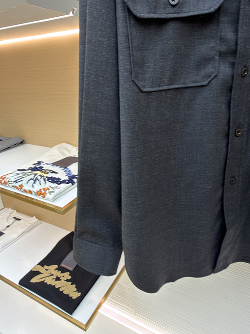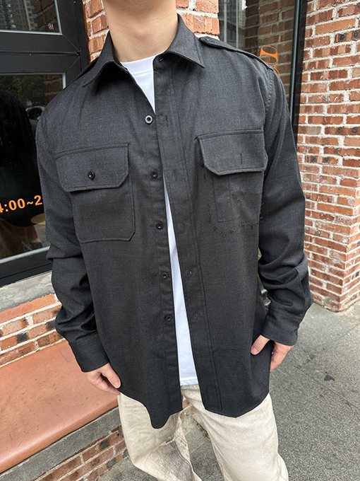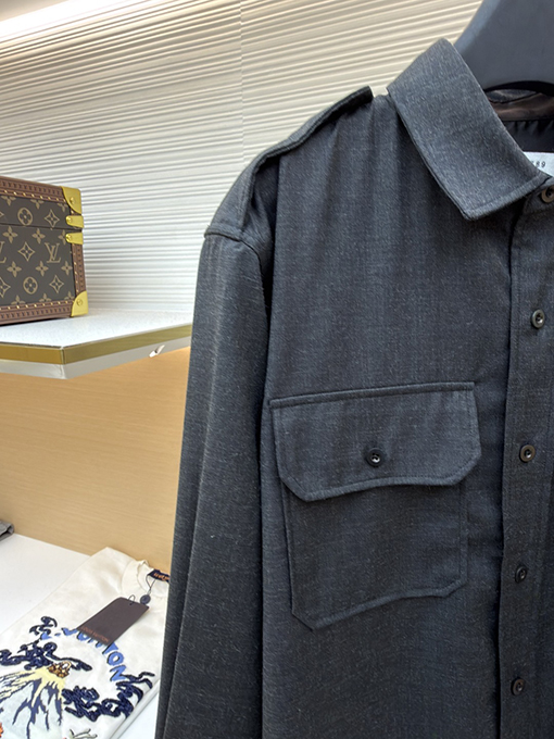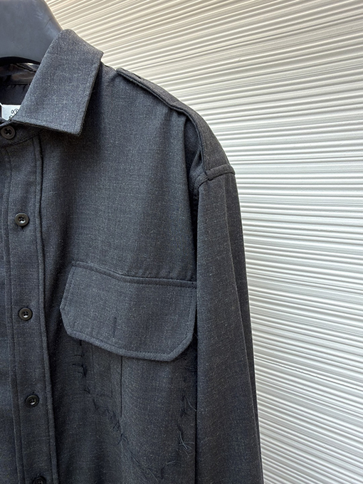 | 商品说明 | ステッチ装飾が際立つこのウールシャツは、ミニマルなシルエットと精緻な職人技によって、「不完全な完璧さ」というコンセプトを体現しています。ウールとファインウールをブレンドした、特注の極上ソフトツイル生地を使用し、サンドウォッシュ加工を施すことで、温かく繊細な風合いと心地よい肌触りを実現しています。漆黒とスモーキーグレーのコントラストが織りなす控えめな光沢は、レトロな雰囲気とクールで理性的なオーラを醸し出します。