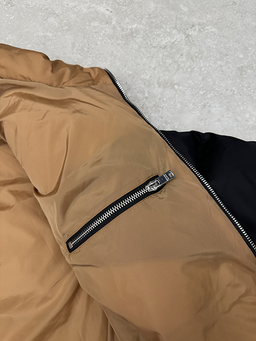 | 商品说明 | スタンドカラーのカラーブロックダウンジャケットは、シンプルでクリーンなデザインでありながら、細部にまでこだわったディテールが、さりげないラグジュアリーを醸し出します。高密度の防風ナイロン素材を使用し、滑らかで繊細な手触りを実現。軽量ながらもしっかりとした構造で、冷たい風を効果的に防ぎます。特徴的なカラーブロックの裏地は、このジャケット全体のハイライトです。内側と外側の鮮やかな色のコントラストは、着るたびに洗練されたセンスを引き出し、ブランドの常に先駆的なファッションセンスを体現しています。 |