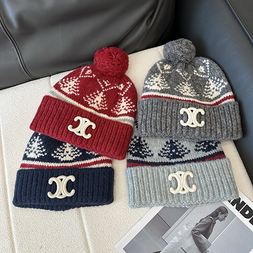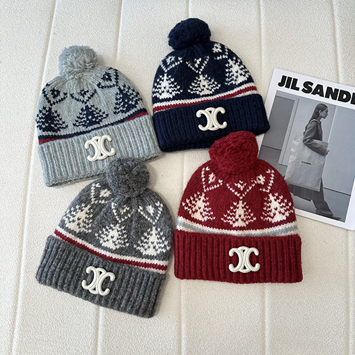 セリーヌコピー 新作ウール混ポンポンニット帽