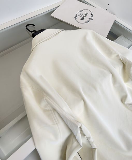 | 商品说明 | 2025年秋冬コレクション、プラダはイタリアならではの美学を駆使し、洗練されたクラシックジャケットのスタイルを今シーズンに再構築します。新たに登場したインポート素材のエコフレンドリーなスエードラペルジャケットは、上質な肌触り、象徴的な三角形のエンブレム、そしてミニマルでシャープなラインが特徴で、今シーズン最も価値のあるハイエンドアウターウェアの一つです。 |