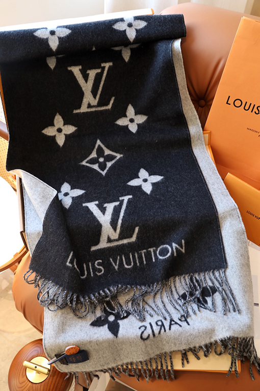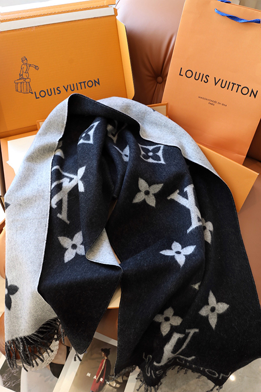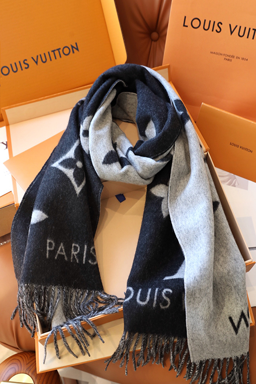 ルイヴィトンスーパーコピー ブラックのクラシックモノグラムカシミアショール