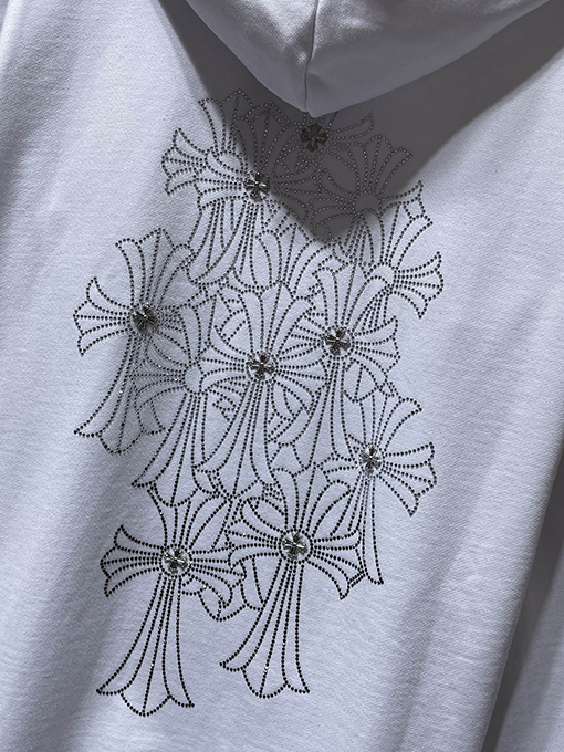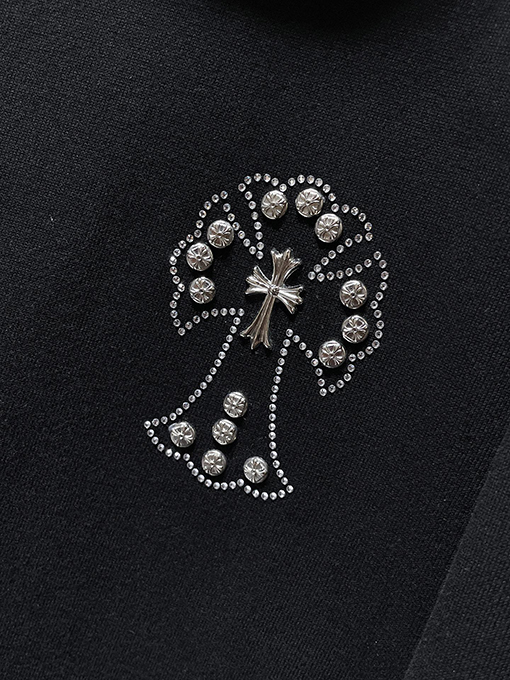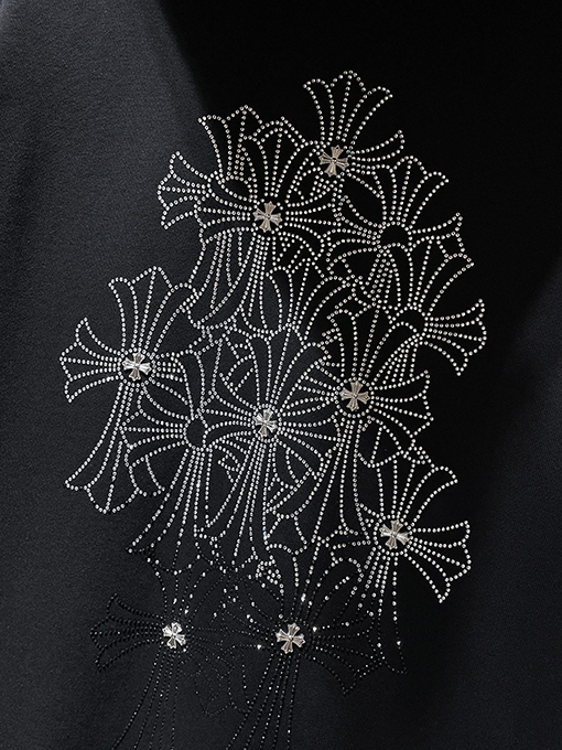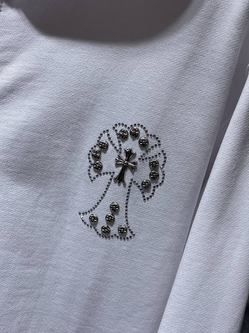 | 商品说明 | デザイン面では、クラシックなクロスモチーフにホットフィックスのラインストーンをあしらったスウェットシャツです。高品質な輸入ダイヤモンドを使用し、熟練の職人が手作業でセッティングしたラインストーンは、ジルコンのような輝きを放ち、細部に至るまで輝きを放ちます。視覚的にも印象的で、高い視認性を誇る一着です。また、ハンドメイドのスタッズを巧みに配置することで、立体感とレイヤー感を演出し、精巧な職人技と先進的なデザインコンセプトを体現しています。 |