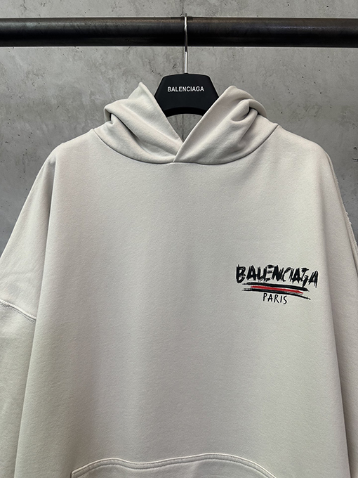 | 商品说明 | バレンシアガの25SSコレクション新作、ロゴグラフィティプリントのフーディーは、ストリートアートとハイエンドな職人技が見事に融合し、個性豊かでファッショナブルなトレンドアイテムに仕上がっています。普段使いにも、トレンド感あふれるルックにも、このフーディーはあなたの個性的なファッションセンスを際立たせます。生地はパリのメーカーによる特注織り・染色の100%コットンを使用し、480グラムという重量で、しっかりとした厚みと耐久性を実現しています。 |