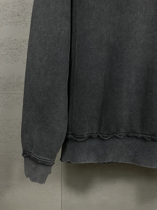 | 商品说明 | フロントは実用的なジップアップカーディガンデザインで、左フロントには装飾的なフェイクジッパーを施し、デザインの奥行きを演出しています。袖口と裾はほつれ加工と手作業によるダメージ加工が施され、個性的で風合い豊かなヴィンテージ感を醸し出しています。ゴールドとシルバーのパウダーで装飾された「BALENCIAGA Paris FASHION DESIGNER」のレタリングプリントは、きらめく輝きと高級感を醸し出し、ブランドのデザイン力の高さを物語っています。 |