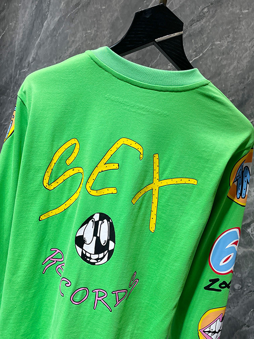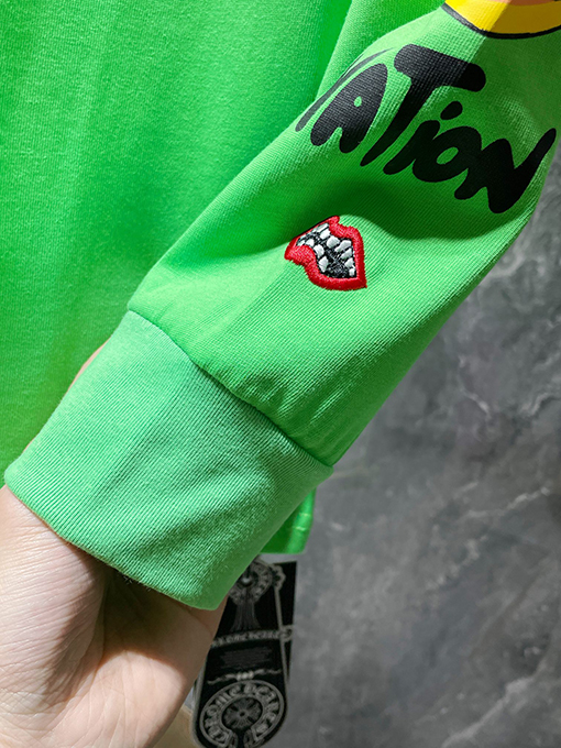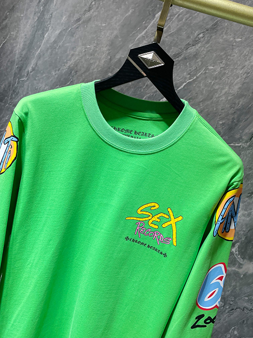 | 商品说明 | このクロムハーツ Sex Recordsグラフィティ限定版長袖シャツは、輸入された環境に優しいプラスチゾルプリント技術を採用しており、一般的な低コストプリントとは一線を画す重要なポイントとなっています。プラスチゾルプリントは、豊かな色彩、高いカバー力、繊細な手触り、そしてすっきりとしたエッジが特徴です。濃い色や厚手の生地でも、美しい仕上がりを保ちます。グラフィティエレメントのデザイン自体もストリート感を強く持ち、Sex Records関連のテキスト、シンボル、パターンを融合させ、重層的な視覚効果を生み出しています。