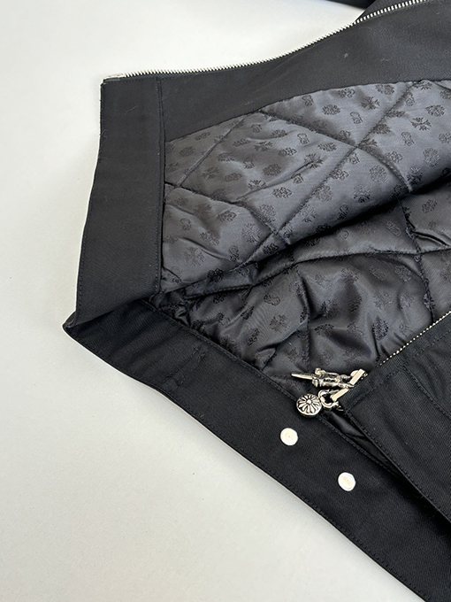 | 商品说明 | クロムハーツの秋冬新作、無地パッチワークレザーキルティングジャケットは、シンプルな無地をベースに、クロムハーツを象徴するパッチワークレザーデザインをあしらっています。キルティングライニングとの組み合わせで、温かみとスタイリッシュさを兼ね備え、ストリートスタイルと実用性を絶妙なバランスで両立しています。 |