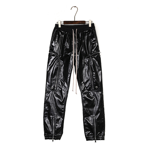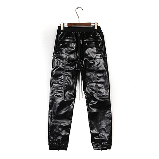 | 商品说明 | リックオウエンスの特殊コーティングを施した光沢のあるテーパードカーゴパンツ。複数のポケットとジッパーを備え、ダークなハイストリートスタイルと機能的な雰囲気を融合させた、実用的でありながらスタイリッシュなボトムスです。腿からふくらはぎにかけてやや細くなるテーパードレッグのデザインで、裾はドローストリングまたはゴム仕様にすることで、すっきりとした力強い印象を与えます。着用時はシャープでスタイリッシュなシルエットながら、歩くと裾に向かってわずかにフレアになり、RICKならではのDRKスタイルと未来的な美学を表現しています。 |