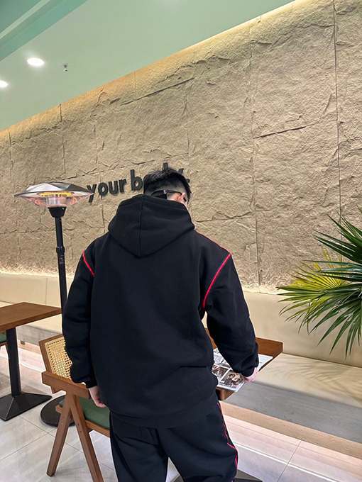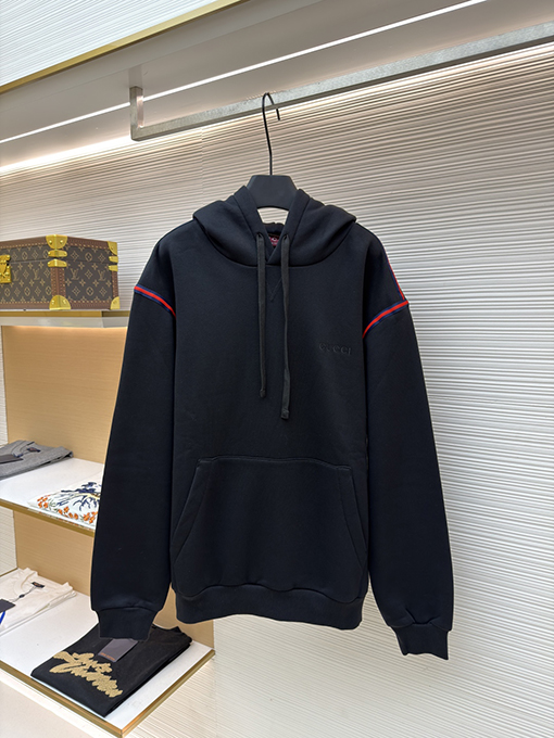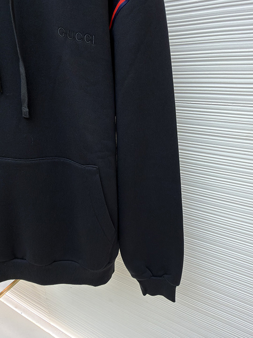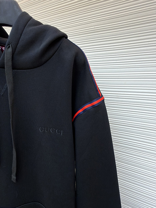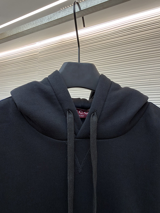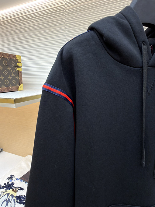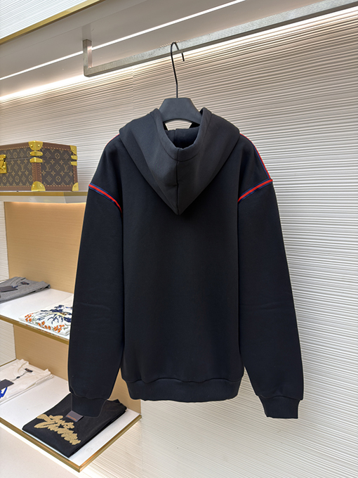 | 商品说明 | グッチのブラック織りリブパーカーは、ブランドのクラシックなスタイルと現代のトレンドを完璧に融合させ、個性的なデザインと上質な職人技が光ります。肩にあしらわれた赤と青の織りリボンは、パイピングステッチで鮮やかにコントラストを生み、純黒の単調さを打ち破り、デザインとレイヤードスタイルを引き立てます。すっきりと整えられた織りラインは、ブランドの精巧な職人技を体現するだけでなく、ストリートスタイルのアクセントにもなっています。 |