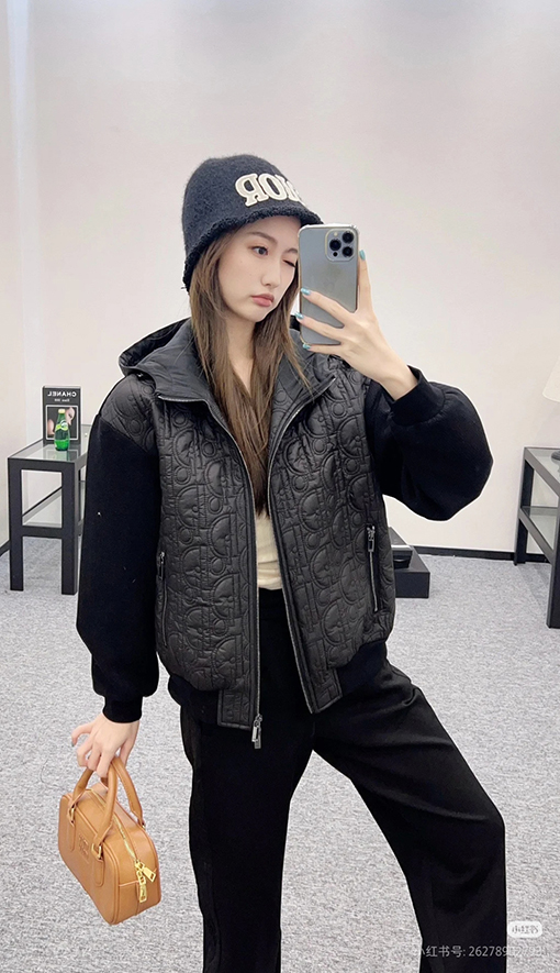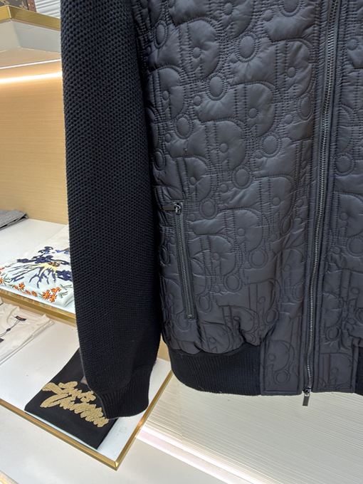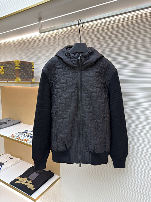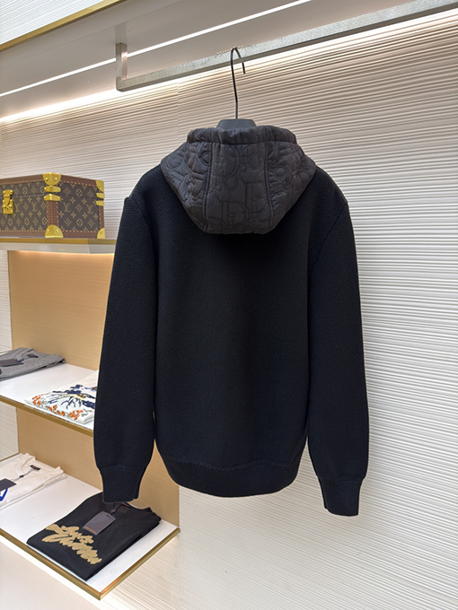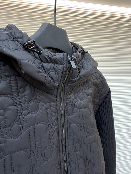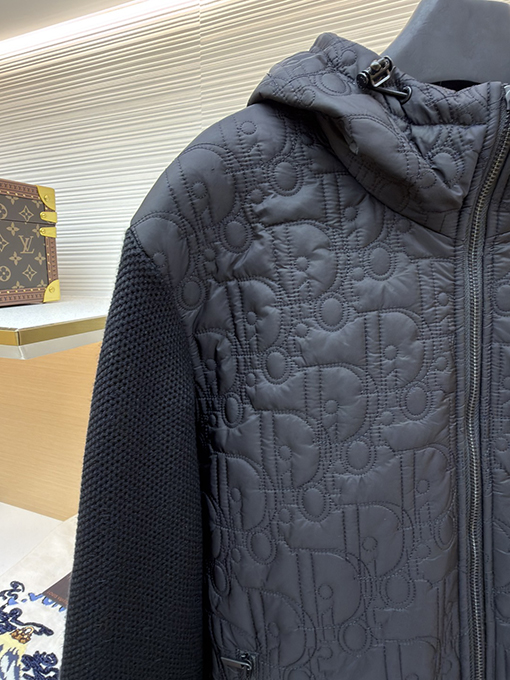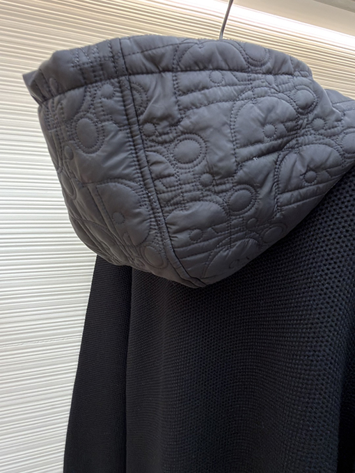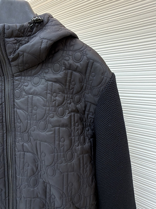 | 商品说明 | ディオール オブリーク プリントのフード付きクロップドジャケットは、マルチマテリアルデザインが特徴で、強いラグジュアリー感を醸し出します。ブラックを基調とした洗練されたラグジュアリーなカラーリングは、スタイルと機能性を兼ね備えたトレンド感のあるアウターです。キルティングとニット素材を組み合わせ、豊かなレイヤード感と、着用時に構築的なシルエットを生み出します。