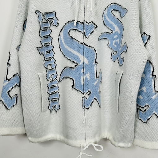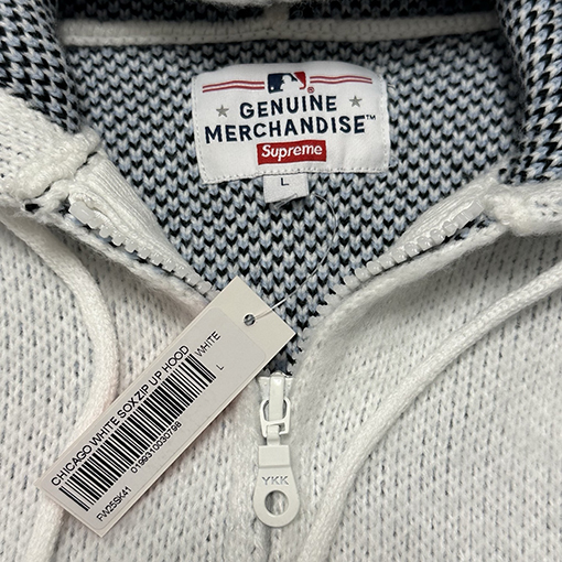 | 商品说明 | SUPREMEとのコラボレーションによるFW25 CHICAGO WHITE SOX ZIP UP HOODED SWEATERは、ストリートウェアとスポーティスピリットが完璧に融合したアイテムで、SUPREMEの一貫したクラシックスタイルと革新性を表現しています。このジップアップフードセーターは、柔らかな肌触りと優れた保温性を兼ね備えた贅沢な生地で作られており、特に秋冬の装いに最適です。 |