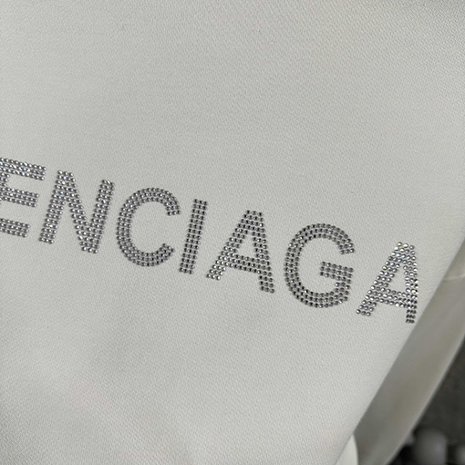 | 商品说明 | バレンシアガの2025年プレフォールコレクションは、革新的なホットフィックス・ラインストーン技術を用いて、ブランドのクラシックロゴを現代的に再解釈しています。それぞれの文字は0.2mmのマイクロクリスタル・ラインストーンで3Dセッティングされ、高温熱定着によって生地に永久的に固定されています。独自の「スターバースト・アレンジメント」は、動くラインストーンそれぞれに16面の反射を生み出し、特殊な接着処理により、50回の洗濯後でも輝きを保ちます。