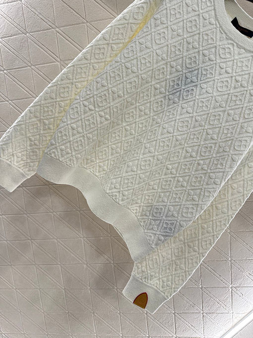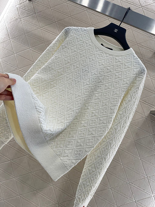 | 商品说明 | 新作のスリーフラワーキルティングプルオーバーセーターは、クルーネックのプルオーバーデザインで、ブランドを象徴するハイファッションの要素を取り入れています。全体に立体的な四つ葉のクローバーキルティング装飾を施し、全体にスリーフラワー柄を施したデザインは、細部までこだわった洗練されたディテールで、エレガンスとトレンド感を融合させたルックを演出しています。 |