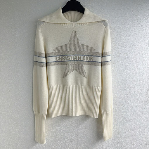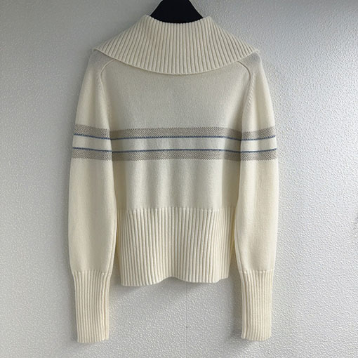 | 商品说明 | 襟付きニットプルオーバーセーターは、ワイドカラーと長袖が特徴で、シンプルながらもスタイリッシュな秋冬ルックを演出します。全体のシルエットはレギュラーショルダーフィットで、肩のラインを美しく見せながら動きやすさも確保しています。胸元の横縞にはクロシェ編みのレタリングと星柄があしらわれ、ミニマルなデザインに個性的なタッチを添え、スタイリッシュでありながら着回し力も抜群です。特注のカシミヤウール混紡糸を使用し、繊細で柔らかな肌触りと贅沢な風合い、そして優しい着心地を実現しています。 |