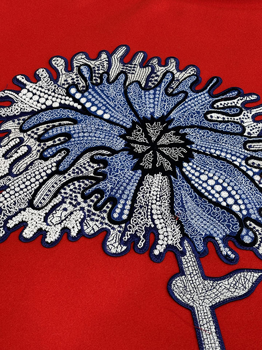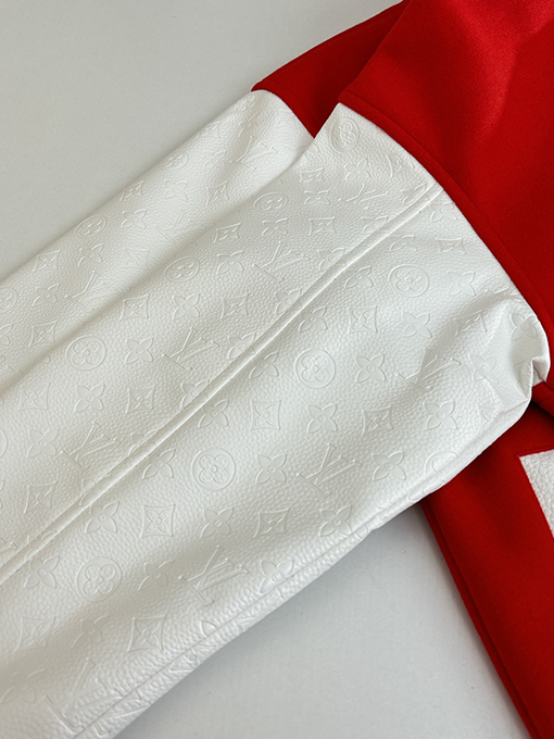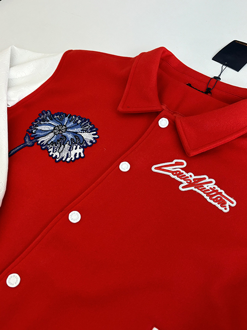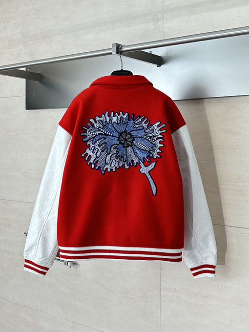 | 商品说明 | 草間彌生のサイケデリックな花柄スタイルにインスパイアされたこのジャケットは、ウール素材に鮮やかな花柄を刺繍し、鮮やかでインパクトのあるビジュアルを生み出しています。ベースボールジャケットのシルエットは、アーティスティックさとストリートスタイルのカジュアルさを融合させ、ユニセックスなデザインは秋冬の様々な装いにマッチします。本体は柔らかく温かみのあるウール素材を使用し、袖にはエンボス加工を施したレザーをあしらい、繊細で風合いのある質感に仕上げています。レザー部分にはクラシックなパターンのエンボス加工が施され、全体に高級感と洗練さを添えています。 |