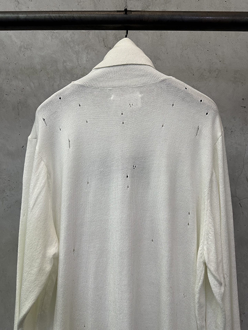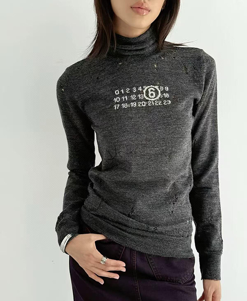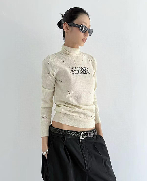 | 商品说明 | 高級感のあるダメージニットジャカードタートルネックプルオーバーは、独特なダメージ加工のディテールと構築的なシルエットを融合させ、個性と芸術性を融合させたスタイルを提案します。タートルネックデザインは、着こなしにレイヤード感をプラスするだけでなく、秋冬の暖かい着こなしにも最適です。ユニセックスデザインで、シャツのインナーとしてはもちろん、一枚でスタイリッシュなスタイリングも楽しめます。厳選された50番手のコットンウール糸を使用し、繊細で柔らかな風合いが魅力です。コットンの優しい肌触りとウールの温かさを両立しています。