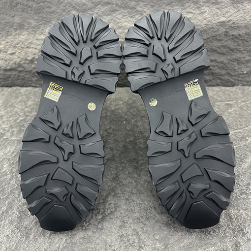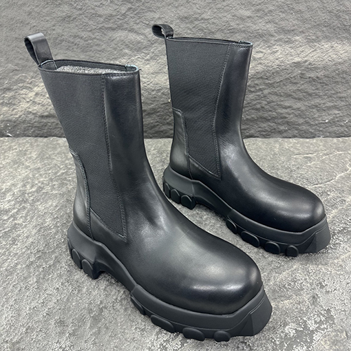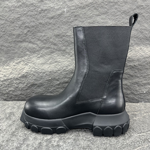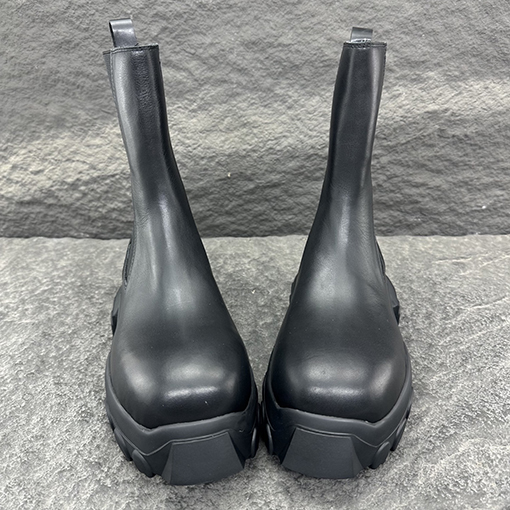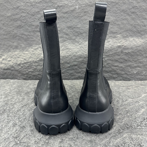 | 商品说明 | クリーンで力強いラインが特徴の、アンクル丈のハイカットプラットフォームブーツ。個性的で洗練された美しさを体現しています。サイドに配した幾何学模様の伸縮性パネルは、着脱を容易にするだけでなく、スタイルに立体感をプラス。角度のあるヒールスタビライザーは、ステッチとシームレスに調和し、ヒールのプルタブが実用性とスタイルの両方を強調しています。ブーツは、伝統的な植物タンニンなめし技法を用いて、最高級の丈夫な牛革を使用し、天然ワックスコーティングで仕上げられています。 |