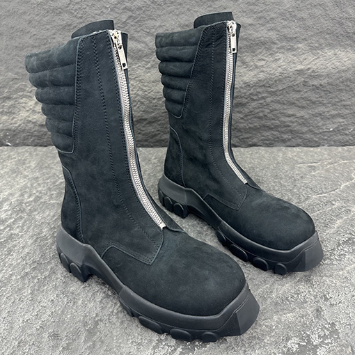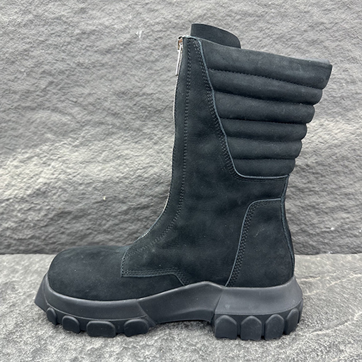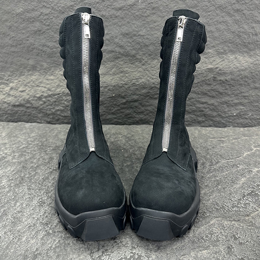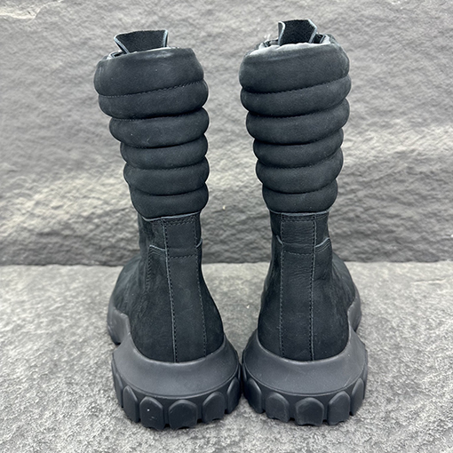 | 商品说明 | くるぶし丈のハイカットブーツ。丸いつま先と厚みのあるテクスチャードソールが、力強く力強いシルエットを演出します。サイドには幾何学模様の伸縮性パネルが埋め込まれ、着脱がスムーズでありながら洗練された雰囲気を添えています。ステッチが見える角度のついたヒールスタビライザーが、構造的な安定性と視覚的なインパクトを両立させています。アッパーは耐久性の高い牛革を使用し、緻密な質感と耐久性を兼ね備えています。 |