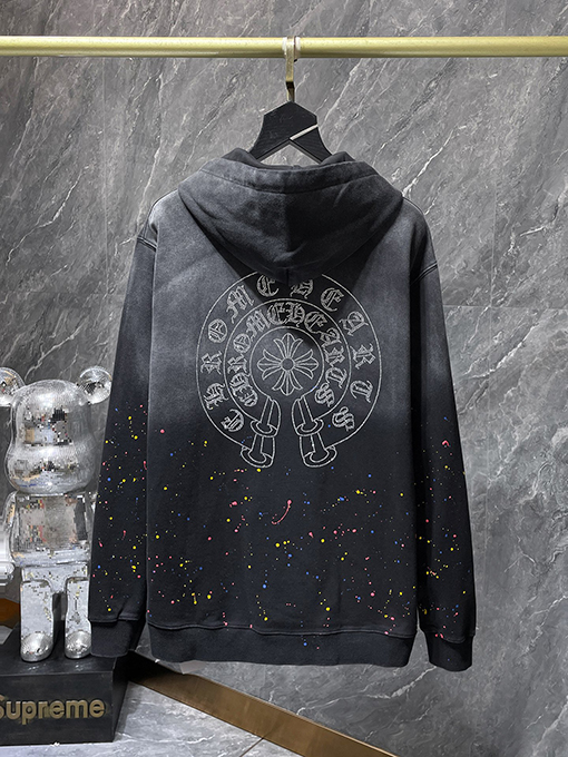| 商品说明 | クロムハーツの感性を込めてデザインされた十字架·馬蹄のポイントグラデーションウォッシングパーカーです。 全身は自然なグラデーションウォッシングとスプラッシュ技法で独特なテクスチャーを生かし、前面と背面には繊細なホットフィックスストーン作業が加えられ、高級感あふれる光沢をお届けします。 |